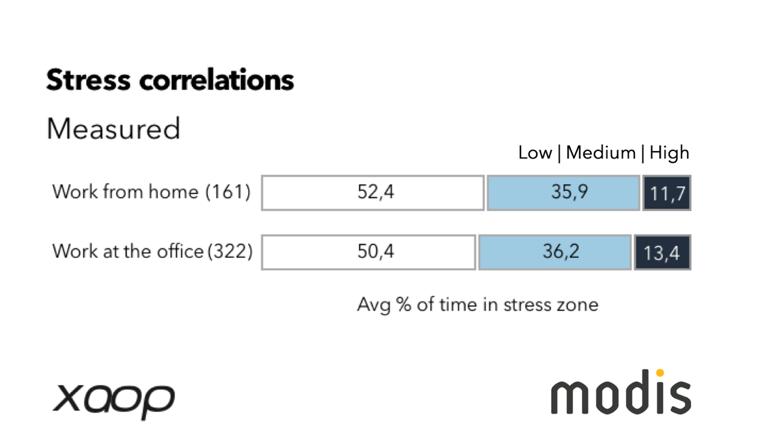 Raising personal awareness about stress as part of the corporate health strategy is just one example of how a smartwatch-based study can be of interest to companies. Alternatively, the aggregated data can be an interesting element when evaluating home working policies, especially with the current perspective of long-lasting home working. Evaluating stress during home-based working, in the current setting where we all long for a day back at the office might reveal interesting and unexpected
